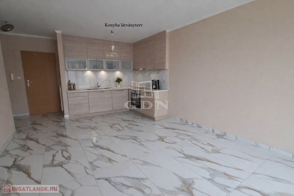 A tágas amerikai konyhás nappali közvetlen kapcsolatban áll az 5 nm-es erkéllyel, amely kellemes kikapcsolódást nyújt a mindennapokban.