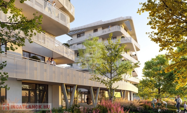 A két épületből álló beruházás során összesen 140 lakás épül, melyek izgalmas vonalvezetésű erkélyei segítik a többlakásos épület harmonikus illeszkedését a ligetes park és a megújult Rákos-patak által létrejövő környezetbe.