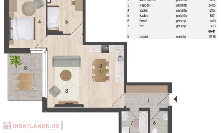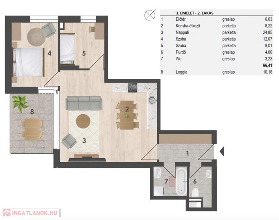 - 1–5 szobás elosztás, 30–130 m²-es alapterülettel