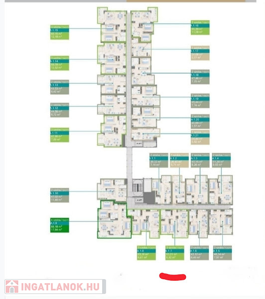 - Nettó hasznos alapterület: 67,62m² (A terasz 50 %-os redukálással szerepel)