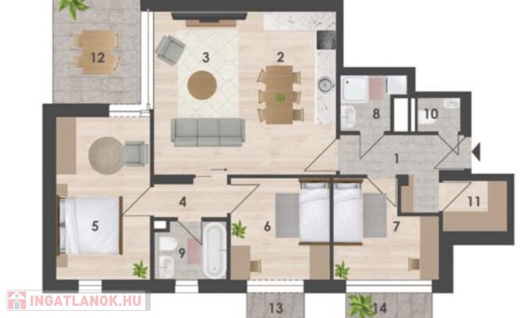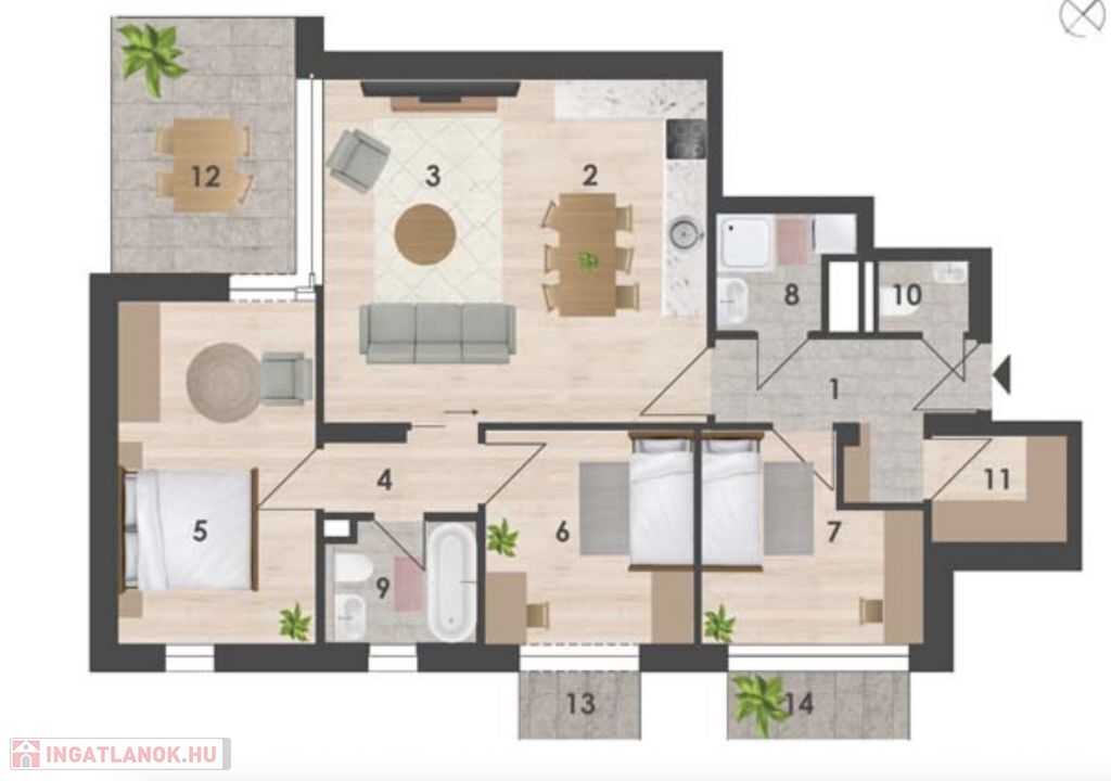 - 1–5 szobás elosztás, 30–130 m²-es alapterülettel