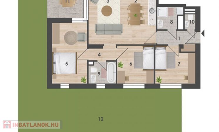 - 1–5 szobás elosztás, 30–130 m²-es alapterülettel