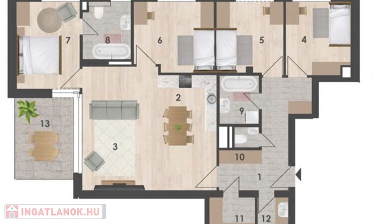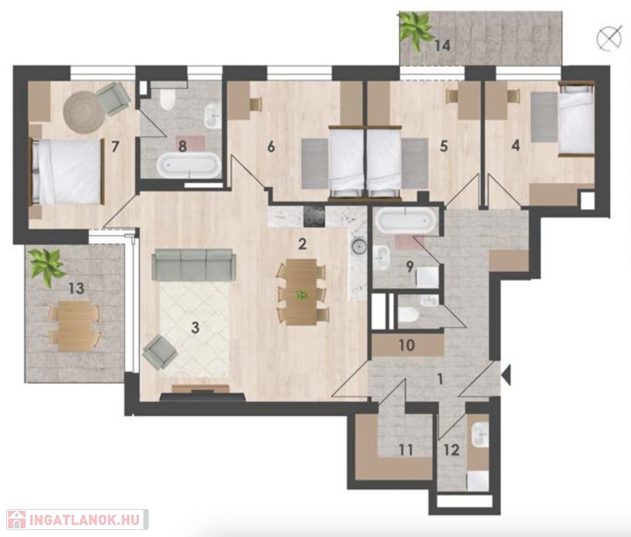 - 1–5 szobás elosztás, 30–130 m²-es alapterülettel