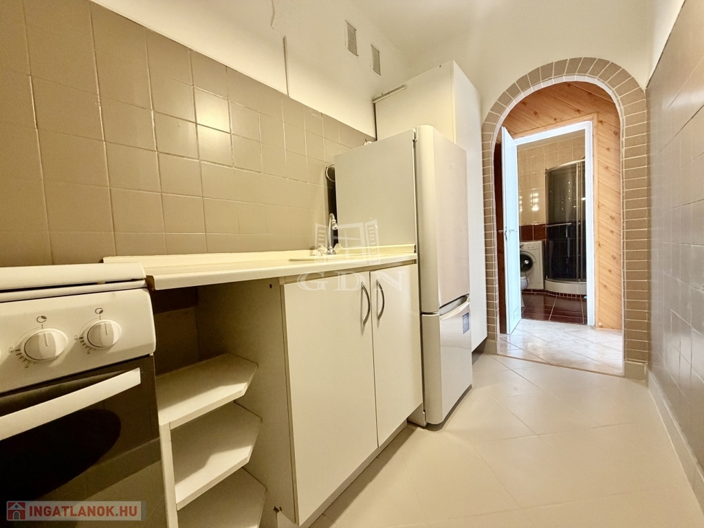 Per- és tehermentes, üres, frissen festett lakás, berendezett, gépesített konyha, mosógéppel ellátott fürdőszoba.