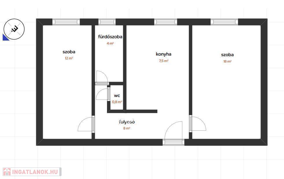 Alapterület: 50 m2,