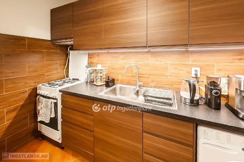 A korábbi átalakításoknak köszönhetően a konyhai területéhez egy praktikus étkező is kapcsolódik. Konyhája újszerű, IKEA-ás konyhabútorral beépítve.