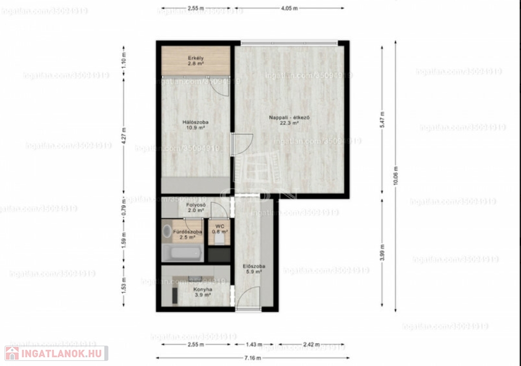 A lakáshoz tartozik egy 3 m²-es erkély is, amely tökéletes hely a reggeli kávé élvezetéhez vagy csak egy kis friss levegőhöz.