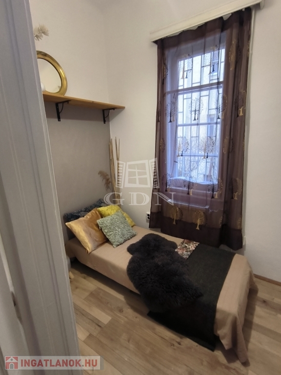 Az Amerikai út közelében eladó egy jó állapotú másfélszobás földszinti kertkapcsolatos lakás egy egy emeletes házban.