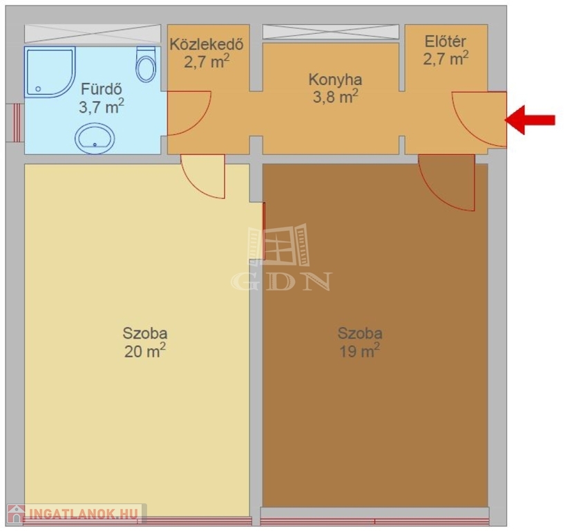 Két kényelmes méretű szoba biztosítja a lakók kényelmét.