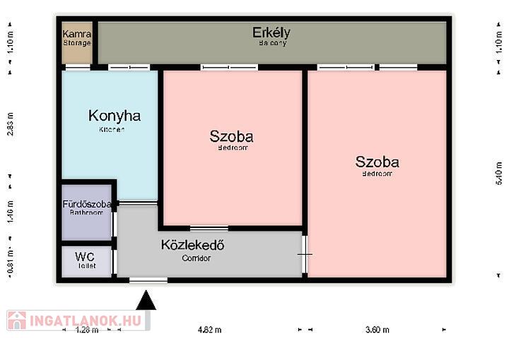 Tartozik hozzá egy 4m2-es tároló és egy felszíni beálló is.