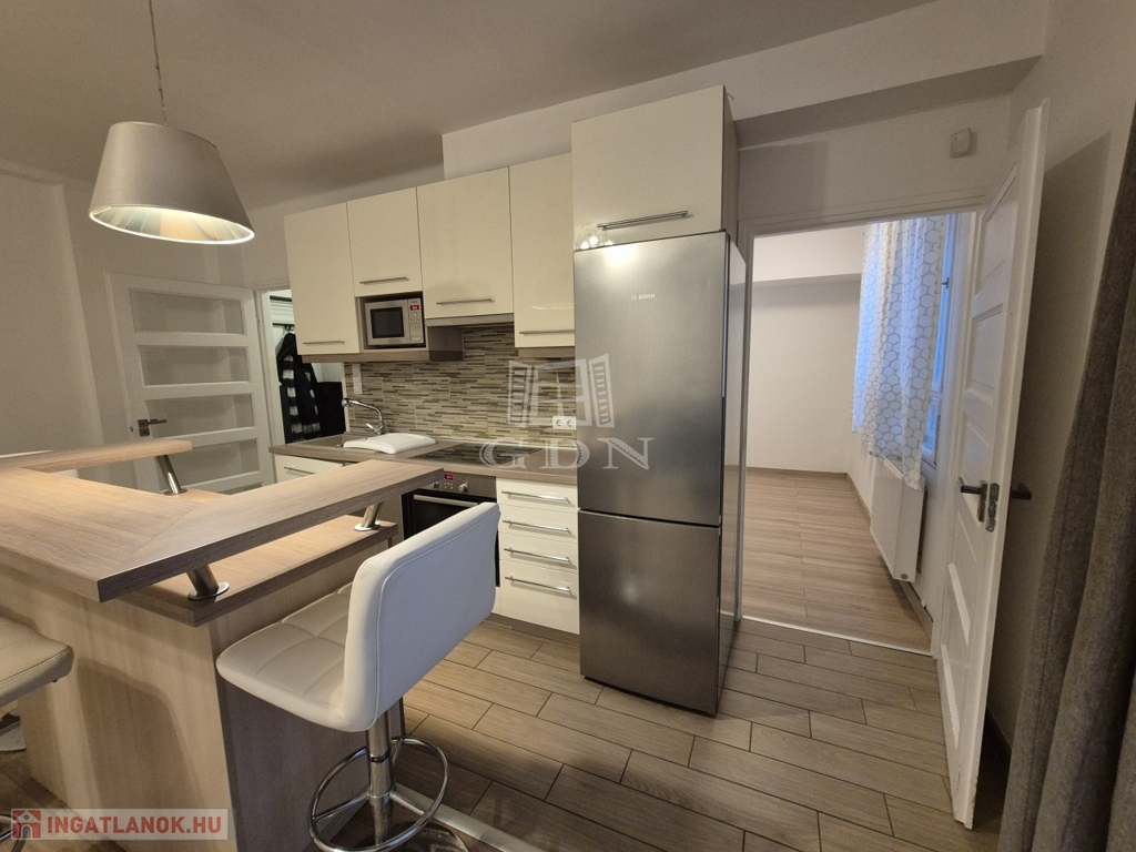 A közelmúltban végrehajtott felújítás modern és ízléses megjelenést kölcsönöz, kiemelve a lakás egyedi karakterét.