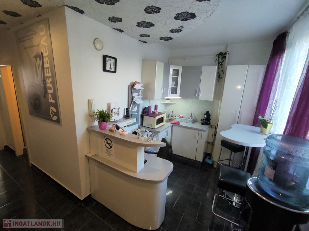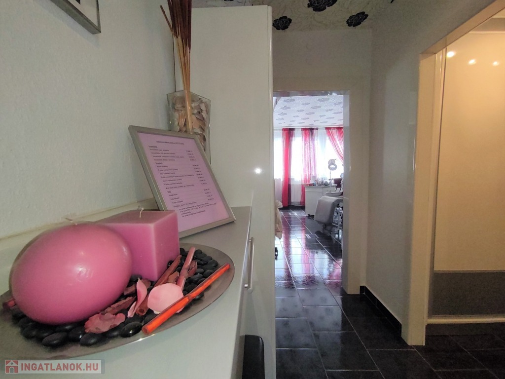 A lakásba a biztonsági bejárati ajtón juthatunk be. A nyílászárók mindenhol modern típusú műanyagra lettek cserélve. A tulajdonos az évek alatt több mindent felújított, klímával felszerelte az ingatlant. A szobák elrendezését tekintve kitűnő elosztásúak, a nappali DK-ti tájolású. Az ingatlan jelenleg szépségszalonnak lett kialakítva (akár gépesítve is átvehető), de lakásnak is alkalmas. Igényes járólap burkolattal lett kialakítva minden helyiség. A bejárattól az ablakos tágas 9,25 nm-es konyhába érkezünk meg. A 4,5 nm-es közlekedőn keresztül jutunk az ingatlan többi részébe. Az igényes járólap burkolatú előszobából jobbra a Wc és a 2,5 nm-es zuhanyzós fürdőt találjuk. Innen nyílik a 14 nm-es, nagy ablakos csempe burkolatú szoba nyílik. A közlekedőn egyenesen haladva a szintén járólap burkolatú, több mint 22 nm-es nappaliba lépünk, innen nyílik a 13 nm-es kisebb szintén járólap burkolatú szoba, ami eredetileg erkélyes volt, de beépítették. Az üzlethelyiség/lakás nagyon szép állapotú, többféle képpen át lehet alakítani. A lakás a D-i, DK-i fekvése miatt kedvező fényviszonyok jellemzik.