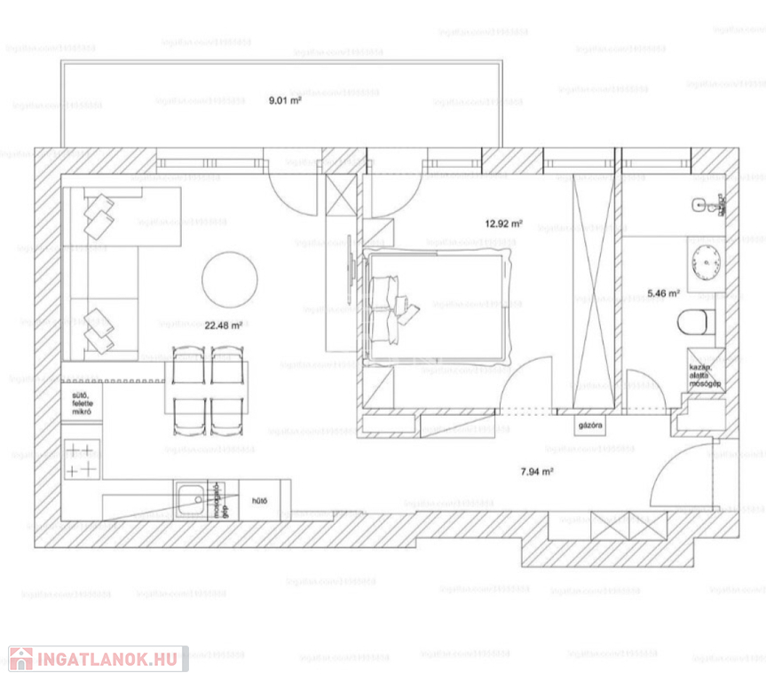 Az ingatlanhoz egy 9 négyzetméteres erkély is tartozik, amely kiváló lehetőséget nyújt a kikapcsolódásra.