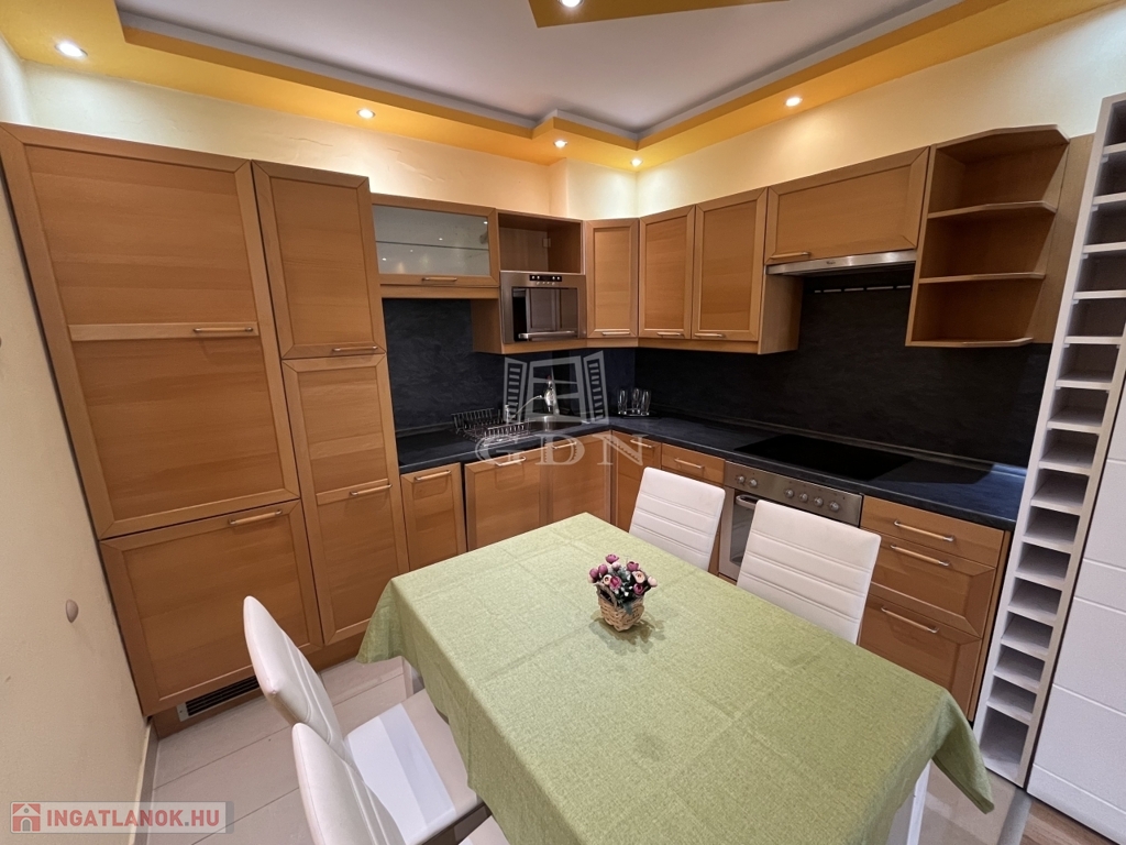 A képeken látható minőségi bútorok a vételárrészét képezik, valamint a beépített konyhabútor összes háztartási gépe: beépített fagyasztós hűtő, mosogatógép, főzőlap, sütő és mikrohullámú sütő.