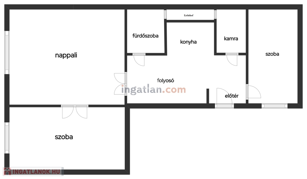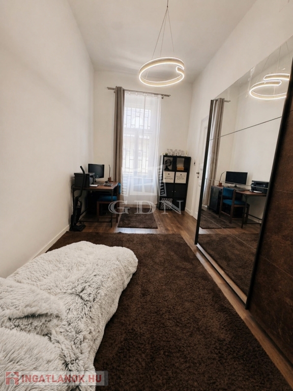 A délkeleti fekvésnek köszönhetően a lakás kellemesen világos, a nappali és az egyik hálószoba a Hungária körútra néz. Az ingatlan elrendezése praktikus és jól élhető: nappali, két hálószoba, konyha, fürdőszoba, kamra, előszoba és folyosó helyiségekből áll, így családoknak, pároknak vagy akár otthoni munkavégzéshez is kiváló választás. A nagy belmagasságnak köszönhetően a lakás igény szerint galériázható, ami tovább növelheti a hasznos életteret.
