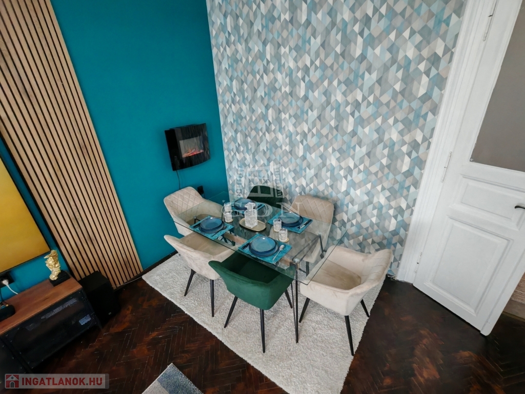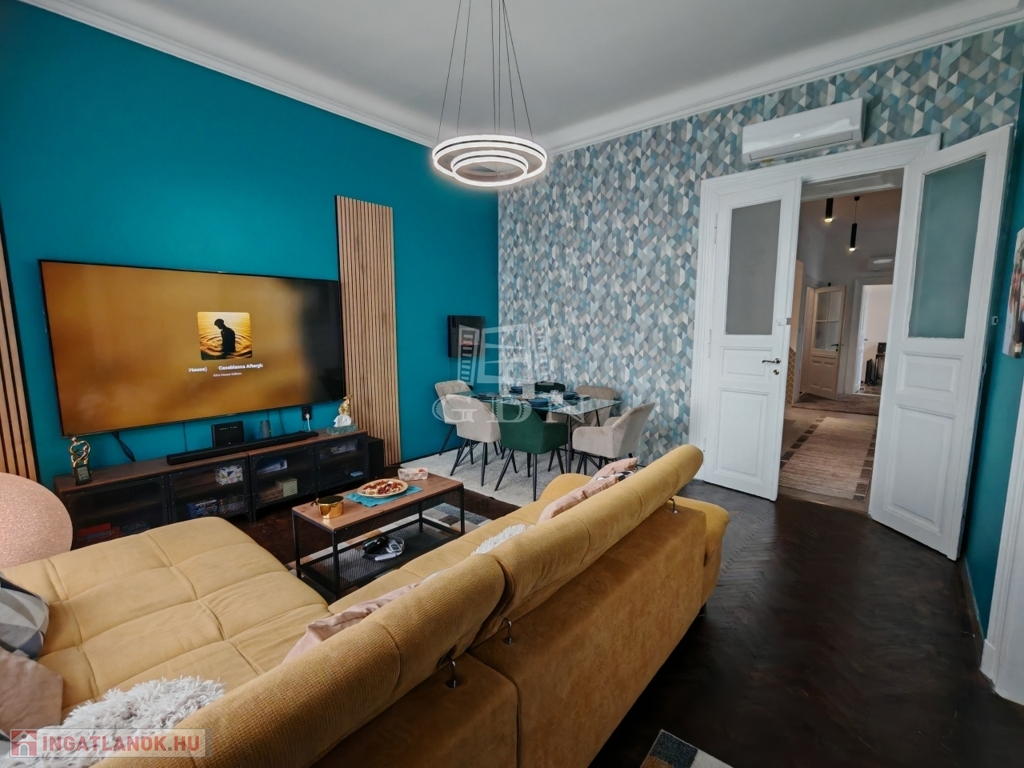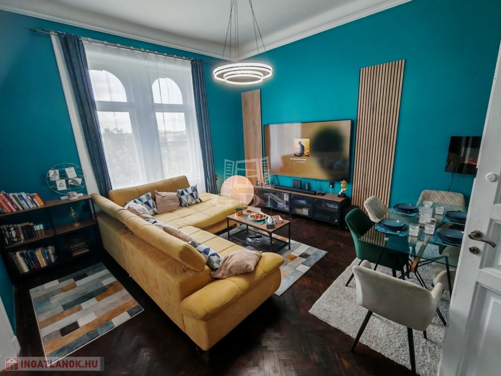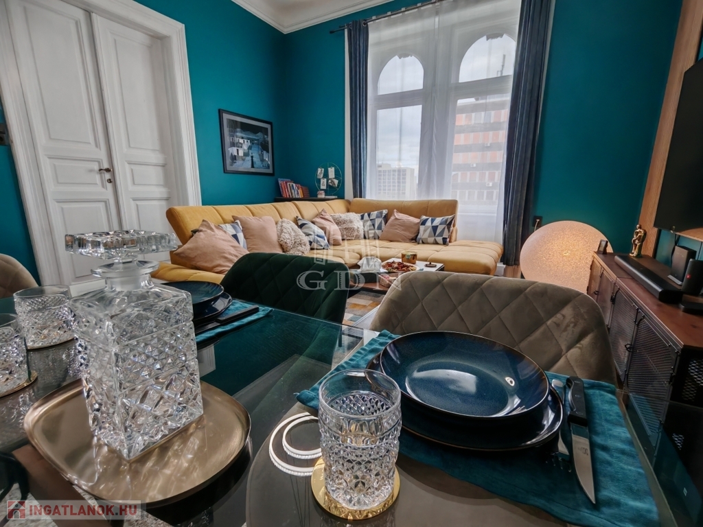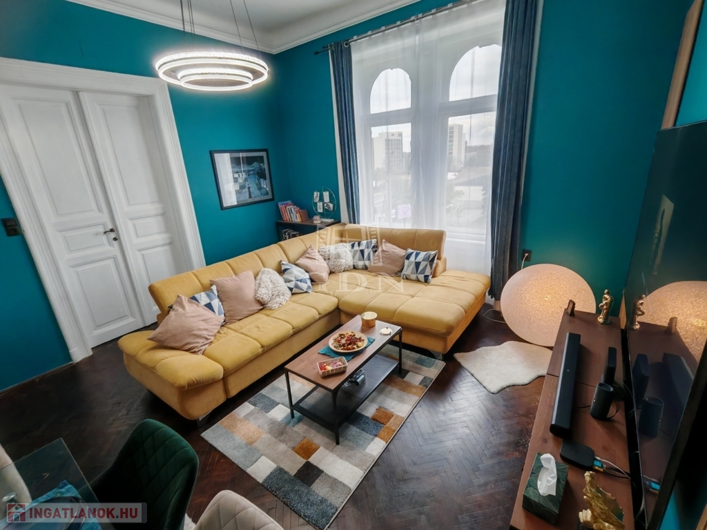 Az ingatlan egy 1910-ben épült, historizáló–eklektikus stílusjegyeket hordozó társasházban található, amely szépen őrzi a klasszikus polgári építészet hangulatát. A lakás különleges atmoszféráját a 3,6 méteres belmagasság, a tágas, világos terek, valamint a polgári lakásokra jellemző elegáns arányok adják, amelyeket a felújítás során fiatalos dizájnnal ötvöztek.