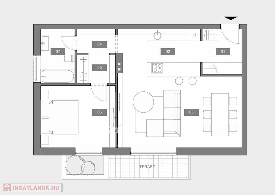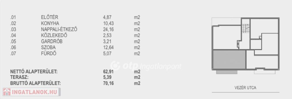 A kinált ingatlan az épület 2. emeletén található nappali + egyszobás, összkomfortos lakás alapterülete 63 négyzetméter, amit 5 négyzetméteres terasz tesz még tágasabbá! A terasz az egylégterű nappali-konyha-étkezőhöz csatlakozik. Nem a nappaliból nyílik a hálóhelyiség, mely mellett a fürdő és a gardrób kapott helyet.