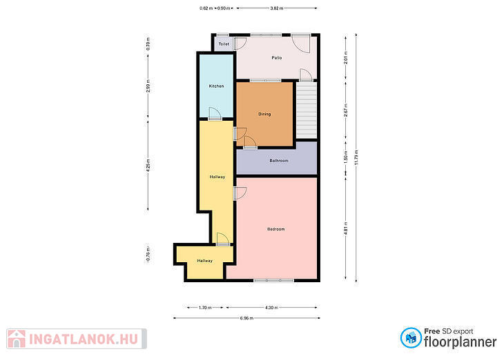 A ház műszakilag jó állapotú, a közművek rendezettek, a lakás elosztása praktikus.
