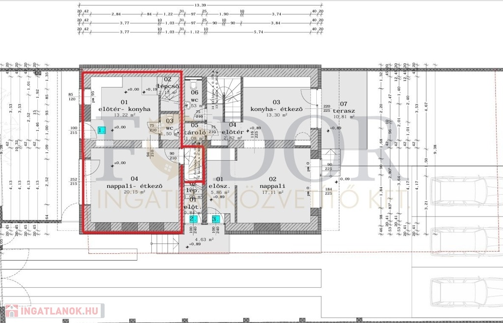 • Extrák: saját pincerész, tároló, lépcsőház (össz.: 10,71 m²)