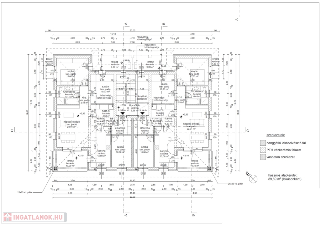-Lakás alapterület: 89,69 m² + erkélyek 9,09 és 10,39 m²