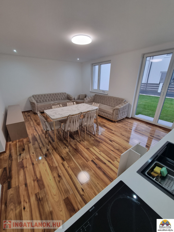 XIX.kertvárosban eladó egy 140 nm-es belső kétszintes,4 szobás,duplakomfortos, garázsos kertkapcsolatos új lakás,a kert mérete 80 nm.Az ingatlan egy négylakásos társasház egyik lakása,egy nagy teleken.