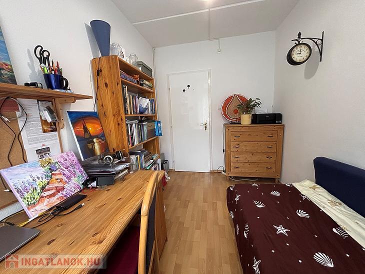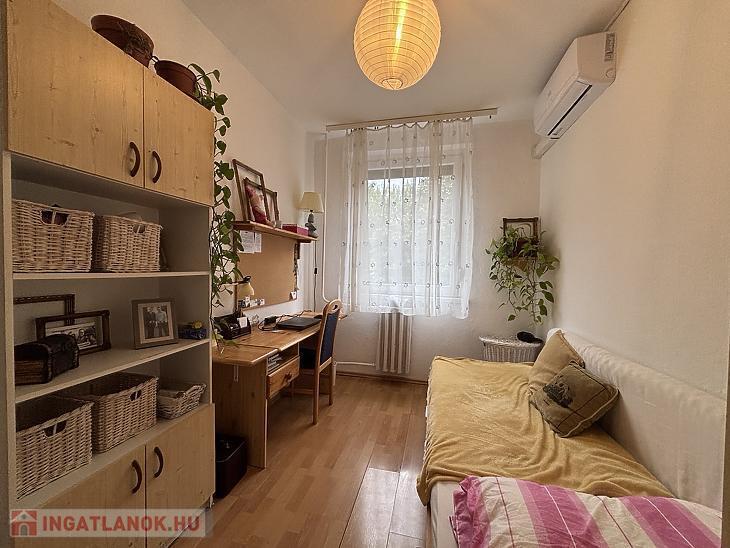Az ingatlan praktikus elosztású, szobái külön nyílnak, a konyha pedig kifejezetten nagy és tágas, így étkezőként is jól használható, családok számára is kényelmes megoldást kínál. A nyílászárók műanyagok, a burkolatok jó állapotúak, a szobákban parketta található. A délkeleti fekvésnek köszönhetően a lakás világos, napfényes.
