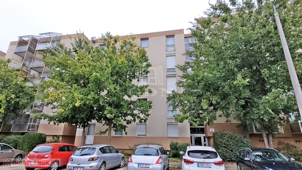 A nappali az Ady Endre út felé néz, a két hálószoba az épület mögötti csendes parkra.