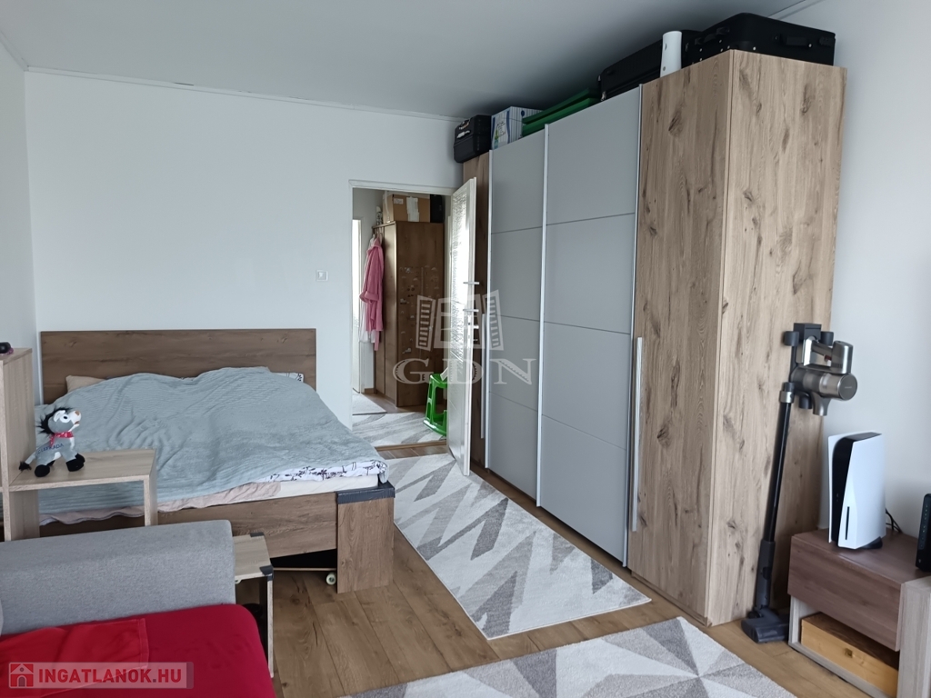 Jelenleg 2 hálószoba, plusz amerikai konyhás nappali felosztású a lakás. Erkéllyel rendelkezik! A fürdőszoba külön álla mosdótól.