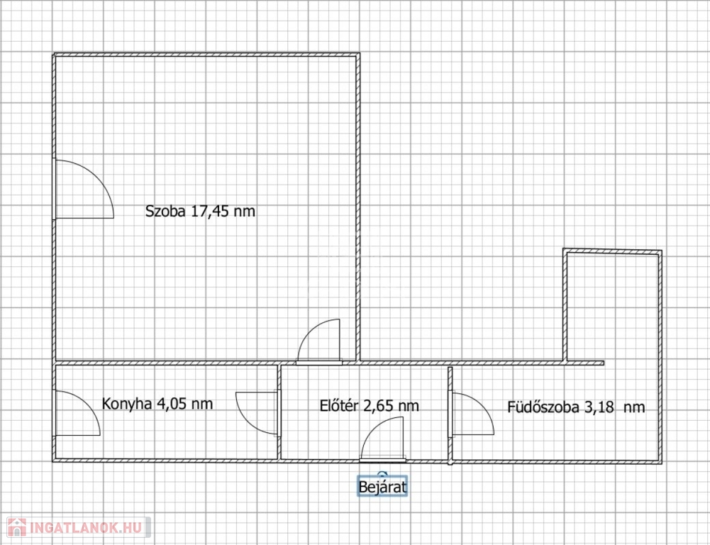 Az épület az 1960-as években készült, 10 cm vastag EPS hőszigeteléssel és vasbeton födémmel rendelkezik. Műszaki állapota jó, esztétikai szempontból átlagos. Az ingatlan elrendezése magában foglal egy 17,5 nm-es lakóteret, egy 4 nm-es konyhát, egy 3,2 nm-es fürdőszobát, valamint egy 2,65 nm-es előteret.