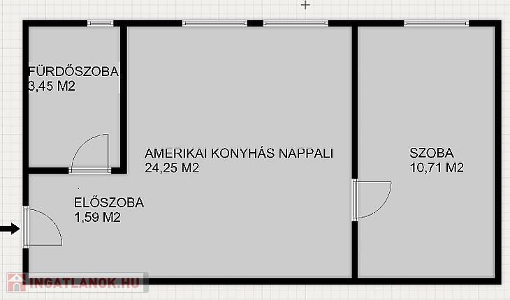 A lakásban tágas étkezős amerikai konyhás nappali, szoba, fürdőszoba kerül kialakításra.