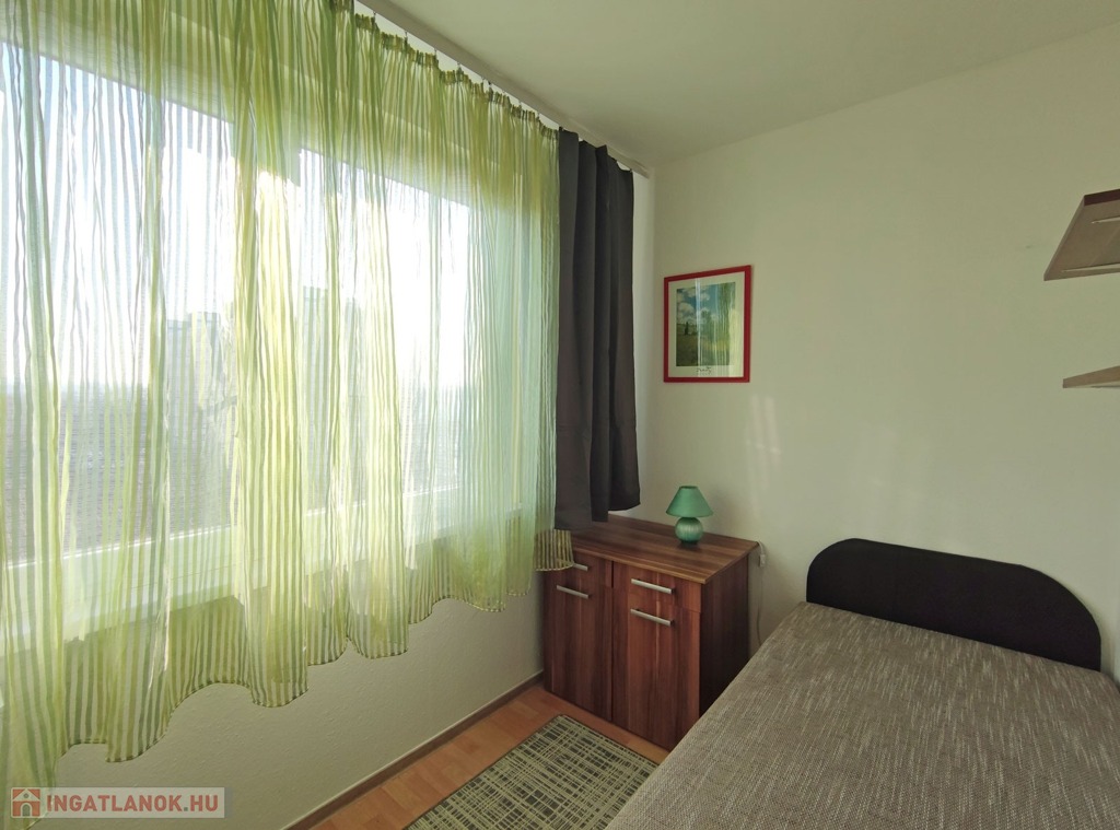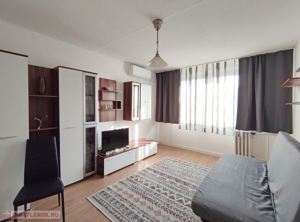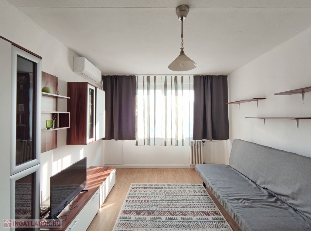 Belépve a közlekedőből balra nyílik a 18,3 mn-es nappali , amit laminált parkettával burkoltak, Dél-Nyugati fekvésének köszönhetően napfényes, nyáron a hűtéséről klíma gondoskodik. Szemben nyílik az ablakos, szintén napfényes laminált parkettás félszoba. Jobbra a közlekedővel egy légtérben található a gépesített 3,85 nm-es konyha, bútorzata újszerű, amely a vételár részét képezi, 6 éve eset át egy tejleskörű felújításon.