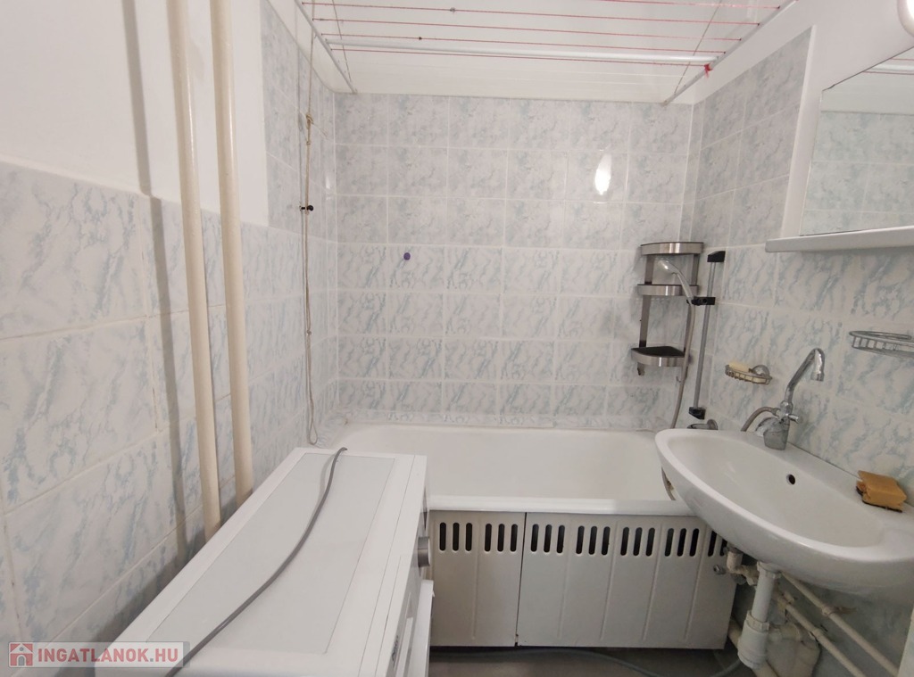 Közvetlenül a konyha mellett találjuk a kádas 3 nm-es fürdőszobát, ami magába foglalja a toalettet is, megkímélt burkolatokkal elátott, de igény esetén felújításra szorul.