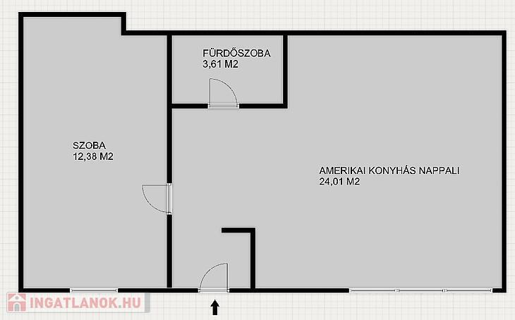 A lakásban tágas étkezős amerikai konyhás nappali, szoba, fürdőszoba kerül kialakításra.