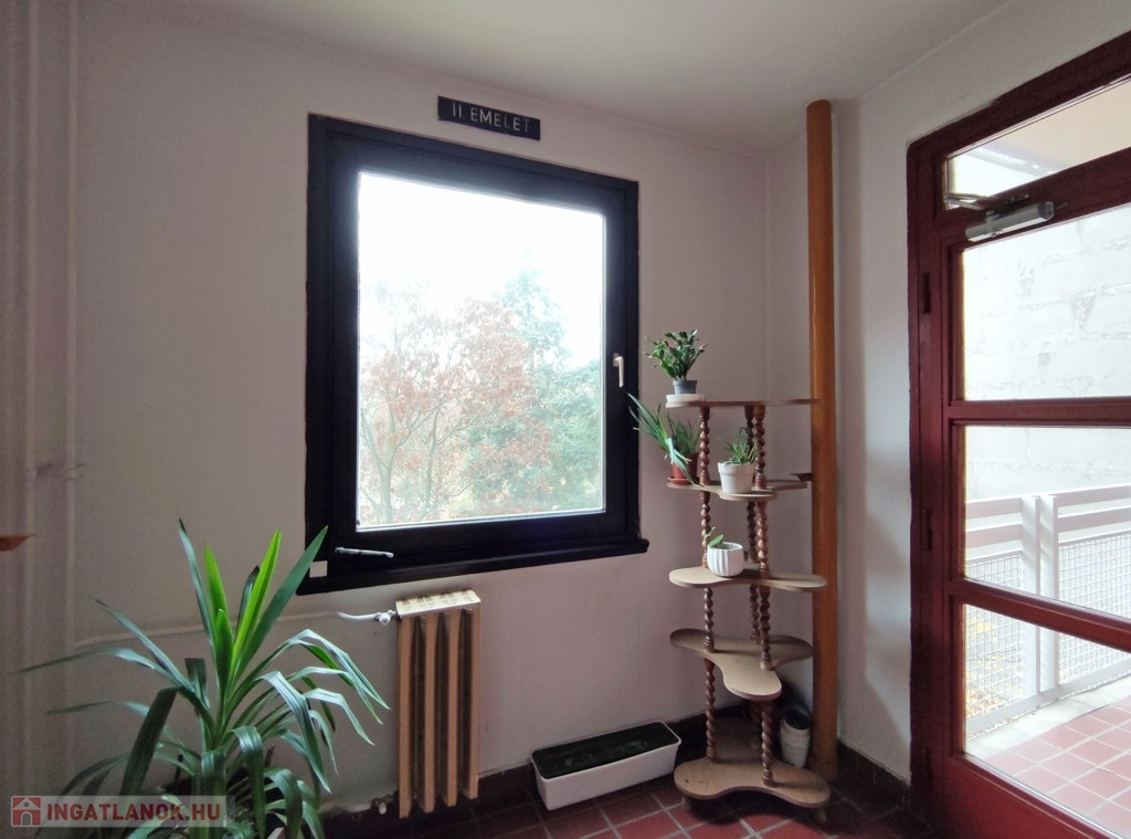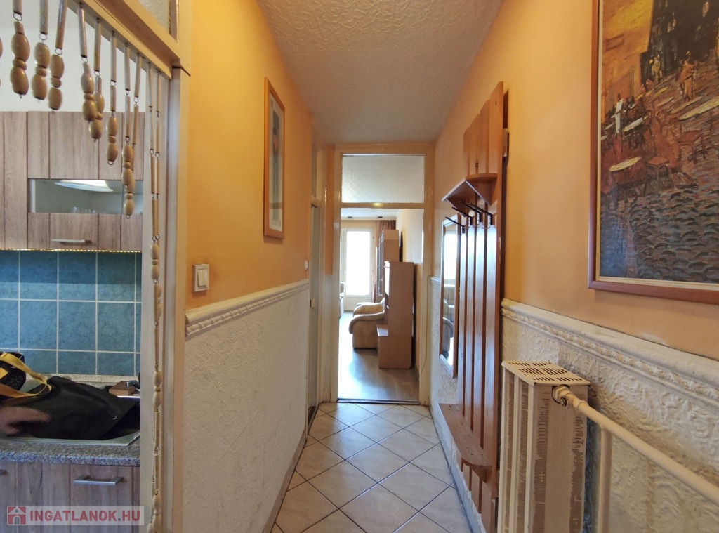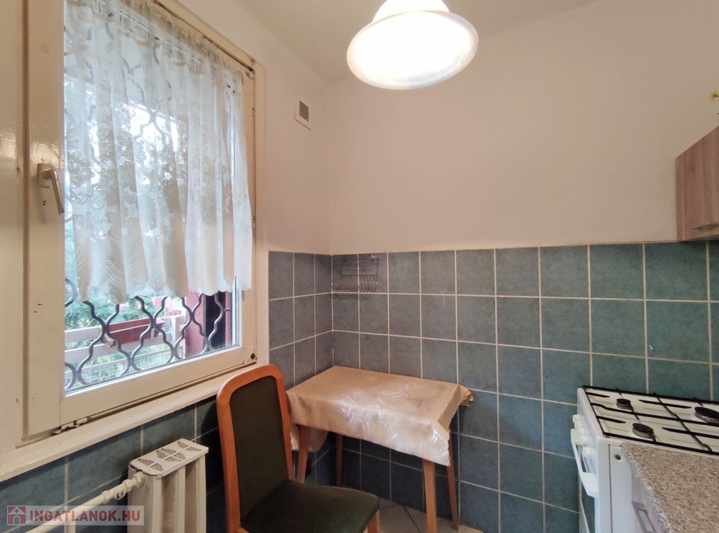 A több ponton záródó biztonsági bejárati ajtón belépve, a közlekedőből balra nyílik a világos, ablakos konyha, ami a csendes, parkos belső udvarra néz. Bútorzata újszerű, a járólapokat 6 éve cserélték. Mellette nyílik a WC-s fürdőszoba, amit szintén 6 éve újítottak fel. A közlekedőben szemben haladva a 20 nm-es világos szobába juthatunk, innen reggelente a 4 nm-es napfényes erkélyre léphetünk ki.