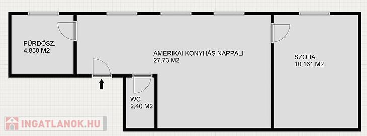 A lakásban tágas étkezős amerikai konyhás nappali, szoba, fürdőszoba és mellékhelyiség kerül kialakításra.