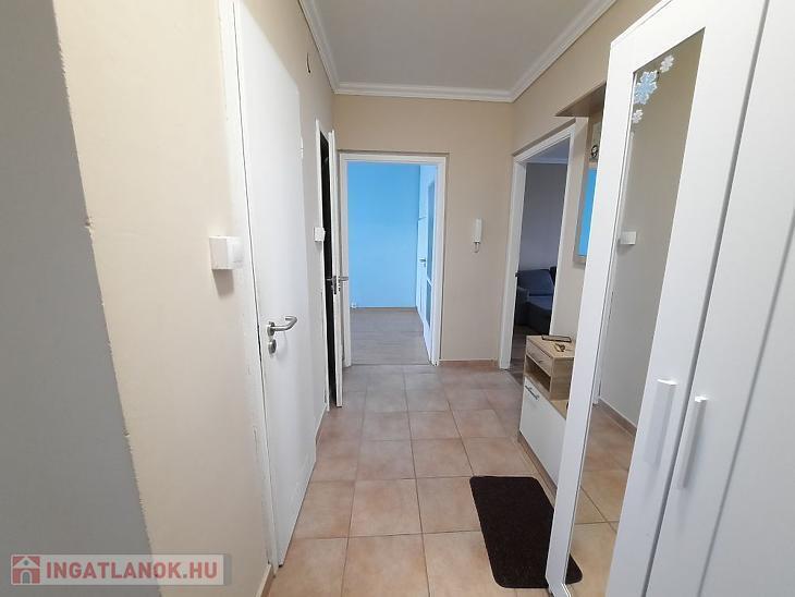 A helyiségek burkolatai igényes állapotúak: a közlekedő és a konyha járólapos, a szobákban laminált parketta található. Műanyag nyílászárókkal rendelkezik. A lakás komfortját hűtő-fűtő klíma is növeli. A fűtést korábbi típusú, de egyedi mérős radiátorok biztosítják, ami gazdaságos fenntartást eredményez. A tágas erkély csendes, zöld parkra néz, így tökéletes helyszín a reggeli kávéhoz vagy egy esti pihenéshez. A konyhabútor a vételár része, a többi bútor megegyezés tárgyát képezi.