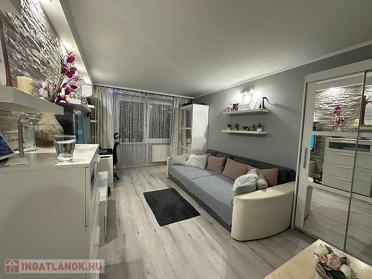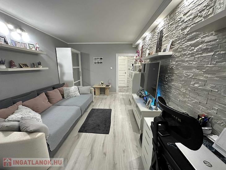 -A lakásban jó állapotú laminált padló található minden helyiségben kivéve a konyhában, ott használtabb állapotú.