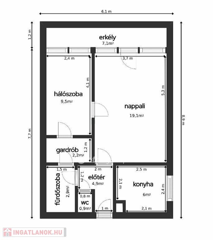 HELYISÉGEK: előszoba, étkezős konyha, nappali, hálószoba, gardrób, kádas fürdőszoba, wc, erkély