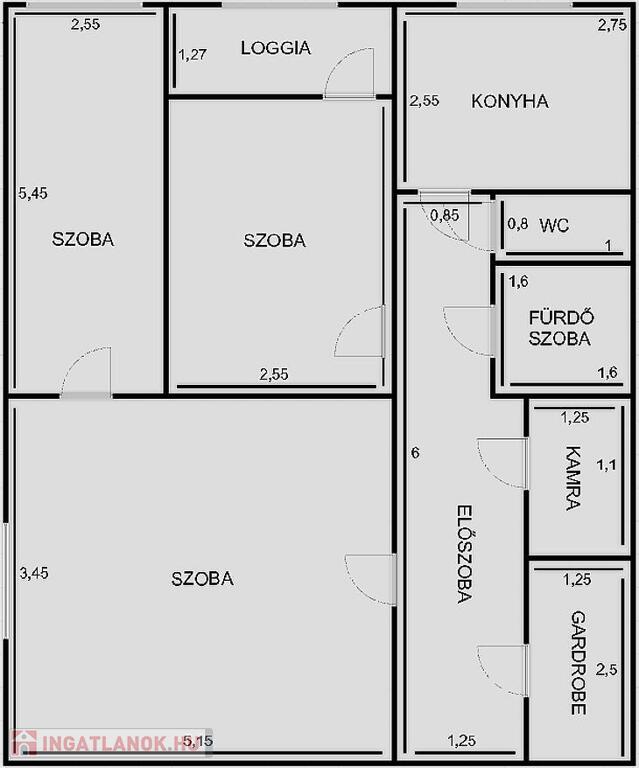 - A szobák parkettásak, a falakat fűrészporos tapéta borítja.