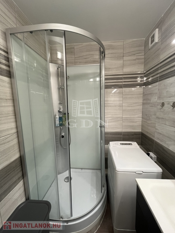- Modern fürdő zuhanykabinnal, törölközőszárítóval