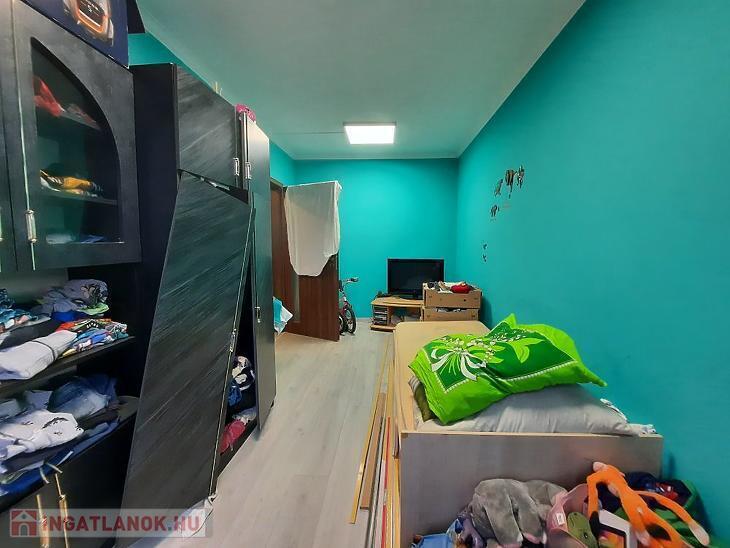 A szobákban és a közlekedőkben minőségi laminált parketta található a falak gletteltek, festettek.