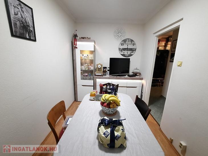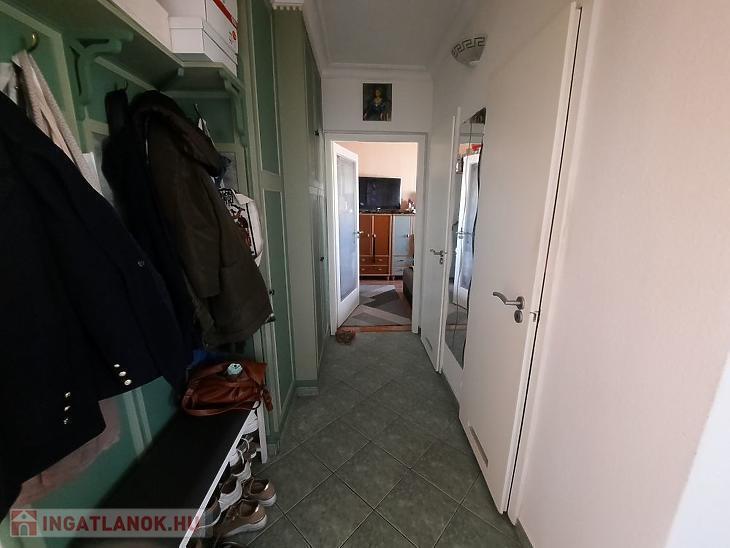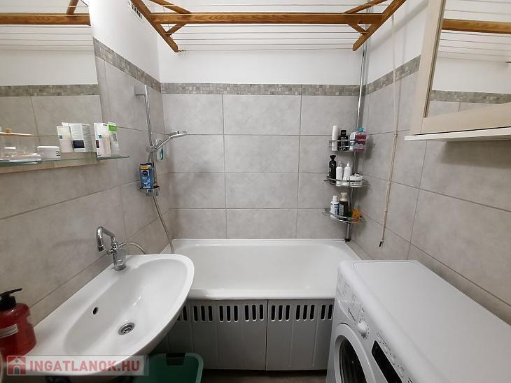 A közlekedő, konyha, fürdőszoba+ wc járólapos, a szobákban laminált parketta található. A fürdőszoba 2 éve felújított, a konyhabútor megkímélt állapotú, és a vételár részét képezi a tűzhellyel és a sütővel. A lakásban két darab hűtő-fűtő klíma gondoskodik a kellemes hőmérsékletről télen-nyáron. A lakás tehermentes!