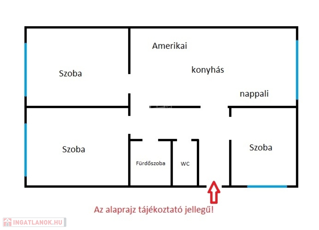 - praktikus, külön nyíló szobák — ideális gyerekszoba, dolgozószoba kialakítására