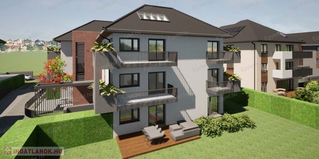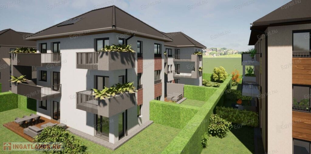 Ennél a beruházásnál még több egyéb méretű lakás elérhető, akár a nettó 86 nm-es 4 szobás lakásig, a földszinten kertkapcsolattal, vagy az emeleti lakásoknál dupla teraszokkal.