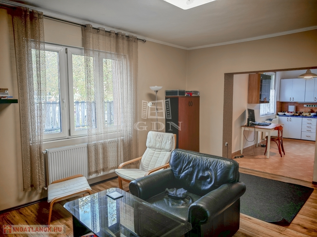 Megvételre kínálok Budapest XVI. kerület Sashalmon, 635 nm-es telken, 3 lakásos épületben, egy nettó 57 nm-es 1 szobás + amerikai konyhás nappali, jó elosztású, szép állapotú földszinti lakást ahol a szülői hálóhoz saját fürdőszoba és gardrób is tartozik.