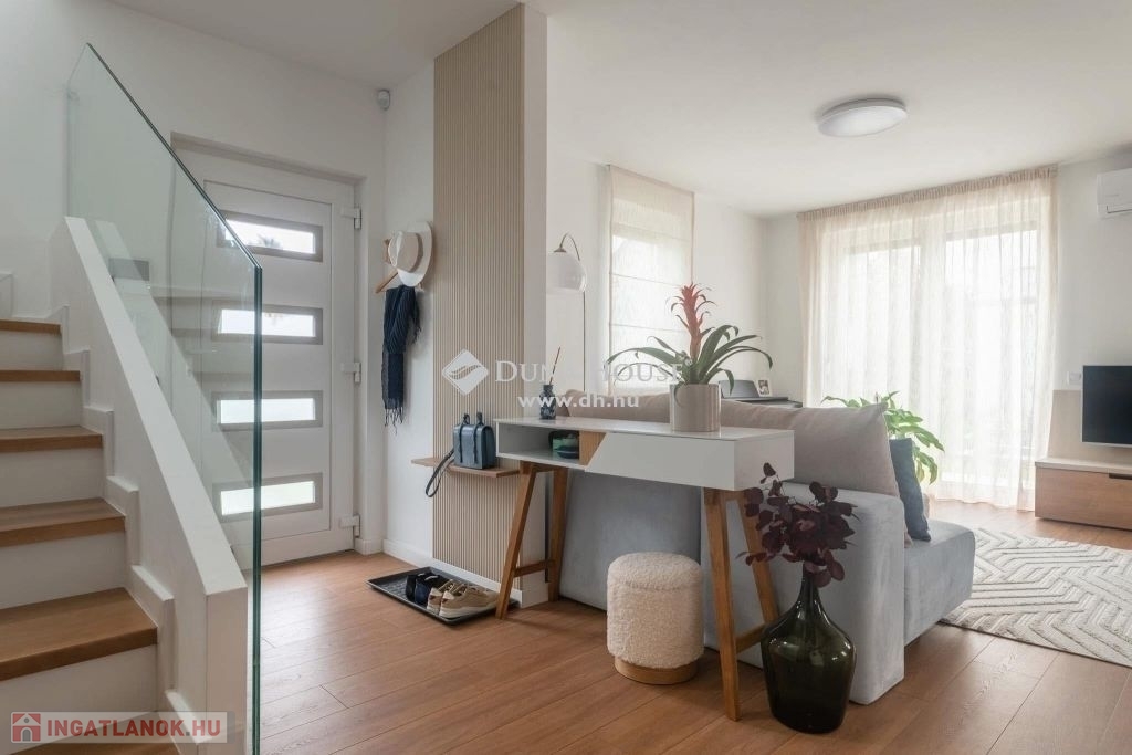 Alapterület: nettó 120 m², teraszok, garázs, tároló, kert nélkül. (Bruttó 145 nm.)Szobák száma: Nappali + 4 hálószoba két szinten.Telek mérete: ~440 m².Fűtés: Elektromos (NOBO infra panel), 3 db klíma.