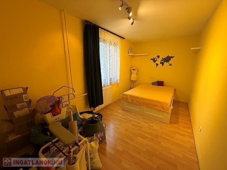 A hálószobák laminált parkettásak, a nappali padlószőnyeges, a konyha, étkező, illetve a közlekedő linóleumos, a fürdőszoba és a wc pedig járólappal burkolt.