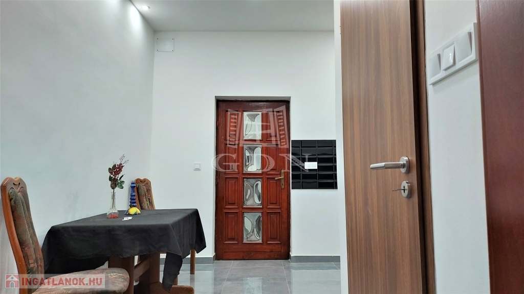 A belső kétszintes lakásba lépve a földszinten, az előszobából, lépcső vezet az emeletre, majd tovább haladva az ebédlős konyhából nyílik a felújított, zuhanyzós fürdő, illetve egy kamra, ahonnan a pincébe juthatunk.Az emeleten, nagy nappaliból nyílik a két szoba és a kádas fürdőszoba.