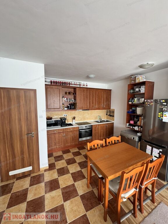 • 2 külön nyíló hálószoba (10,5–10,5 m²) • Konyha + étkező (7,55 m²)