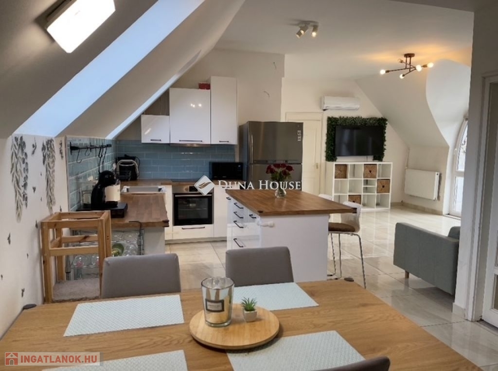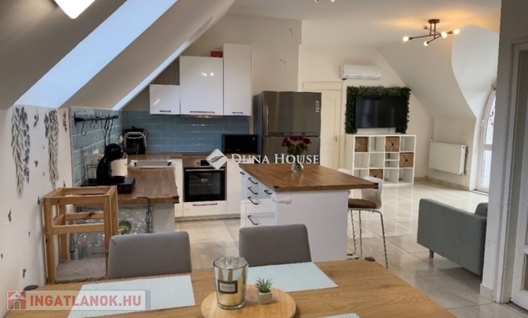 Kivételes lehetőség Budapest 18. kerület kertvárosi részén !3 lakásos társasházban kínálom megvételre ezt a 83 nm alapterülettel rendelkező , tetőtéri lakás Budapest XVIII. kerület Újpéteri részén. Főbb jellemzők:Alapterület: 83 m²Elrendezés:-amerikai konyhás nappali- 2 szoba-fürdőszoba +wc-wc-gardrób szoba Erkély: 4 m², délnyugati tájolású1 db autó beállási lehetőség az udvarra .Kert használatPrivát, zárt lépcsőház + extra tároló + padlásA lakás fűtését és melegvíz ellátását gázcirkó biztosítja , radiátorokon történő hőleadással ( 2025 ben lett korszerűsítve )A lakásban 1 db klíma került beszerelésreA modern kialakítású beépített gépiesített konyhabútor a vételár részét képezi. Csendes, családbarát környék, barátságos lakóközösségA társasházban 2 lakás és 1 üzlethelyiség találhatóKözelben: bevásárlási lehetőségek, óvoda, iskola, orvosi rendelőAmennyiben hirdetésem felkeltette érdeklődését, várom megtisztelő hívását.